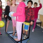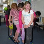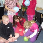 We investigated the strength of balloons by sitting on them, putting them under a table and standing on the table, and putting skewers through them. They were very strong. We were surprised to find they supported our weight. We were surprised the skewer didn’t pop the balloon.