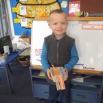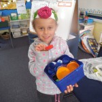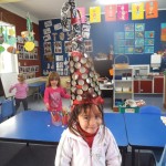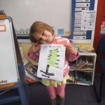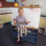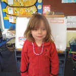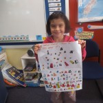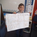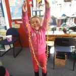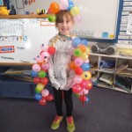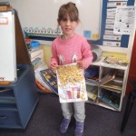 We made a 100 day cake. It was chocolate. It had white icing with 100 m and m’s. – Rose