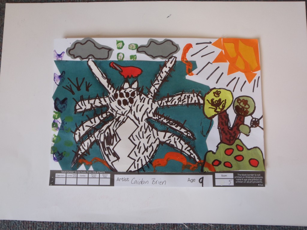 Our calendar art this year was based on our study of Australia. We chose a unique Australian animal to feature in the art which used sharpie pens, potato prints, and collage materials.